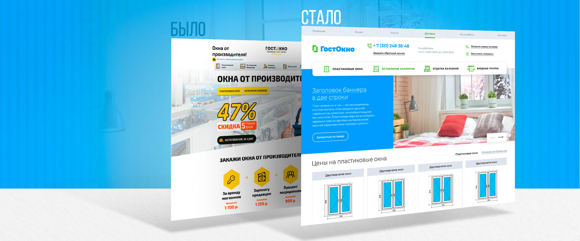 Заказчик к нам пришел с тем, чтобы сделать редизайн его сайта, который год назад купил у одной компании, продающей шаблонные решения. Какое-то время мы проводили анализ сайта, замеряли его конверсию. Мы уже давно работаем с оконными компаниями и знаем показатели, которыми в идеале должен обладать их сайт. Конверсия старого сайта была совсем невысокой и одной из целей, которую мы поставили перед собой — поднять ее в 2 раза относительно предыдущей. Вторая цель сайта — сделать дизайн более дружелюбным и мягким, чтобы не отпугивал пользователей.Первым делом была проведана оценка целевой аудитории, конкурентов, продумана архитектура проекта и разработан интерактивный прототип.